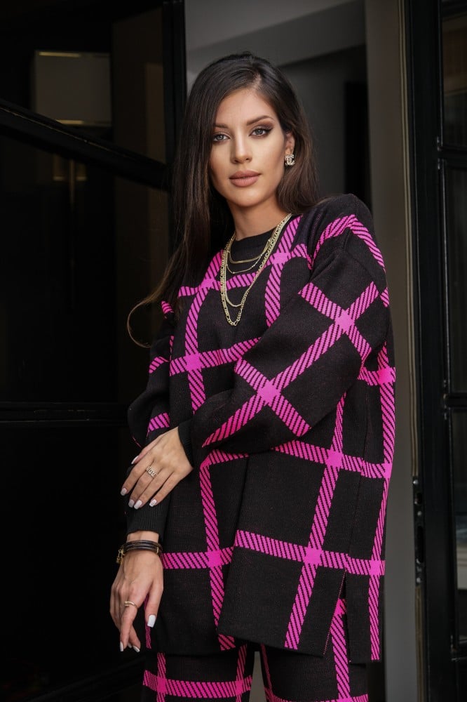 طقم مصنوع من الصوف الدافئ مكون من قطعتين .. بمربعات انيقه .