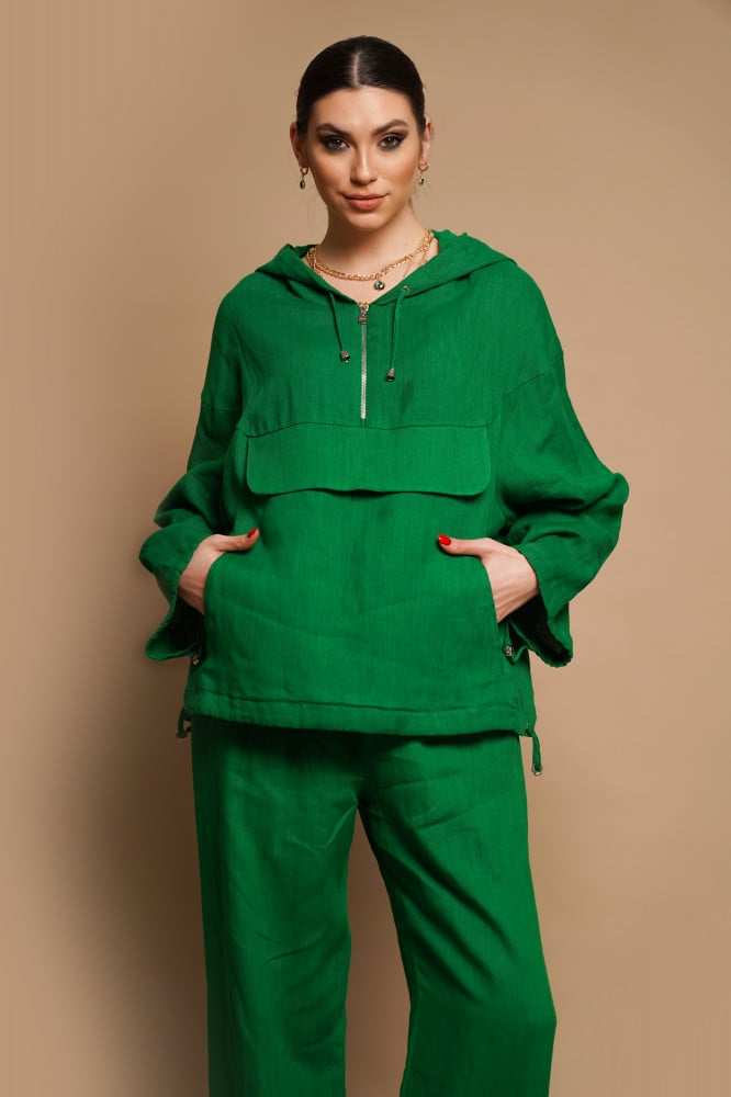 طقم روزا مصنوع من قماش اللينن الخفيف بأكمام كاملة و واسعه و قبعه و بنطلون بمغاط مريح جداً ستكون هذه القطعة عمليه ومريحه للسفر والاستراحات والاماكن الحاره لأن قماشها ماص وقابل للتنفس بشكل ممتاز . اجعلي مظهرك انيق وراقي و مريح غير متكلف ..