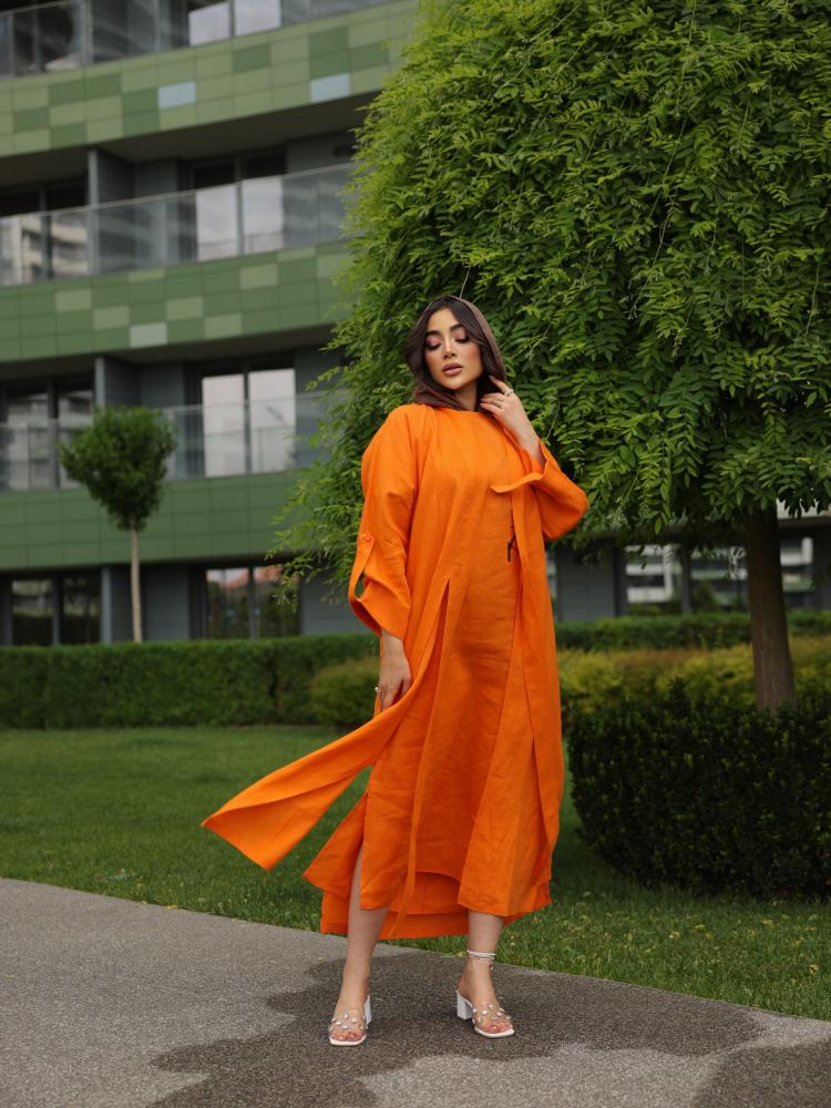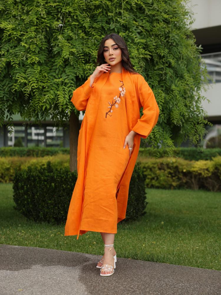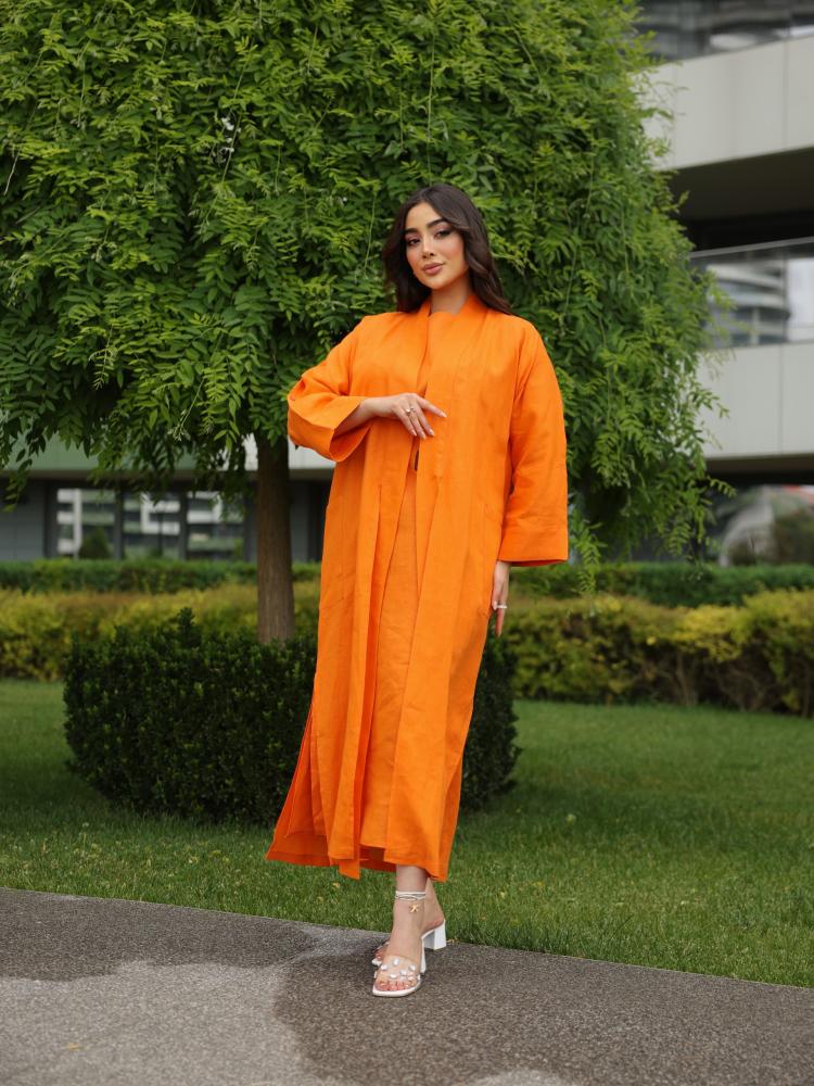 طقم مميز مستوحى من زهرة الأراك الأصيلة، إحدى رموز البيئة السعودية بجمالها البسيط وعراقتها الطبيعية. يتكوّن من فستان داخلي وعباية خارجية مصنوعين من اللينن الطبيعي ١٠٠٪؜، بخامة ناعمة وباردة على الجسم، تمنحك راحة وأناقة في آنٍ واحد.