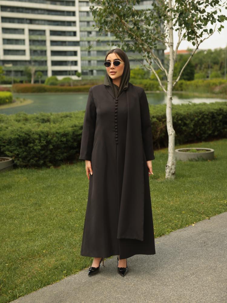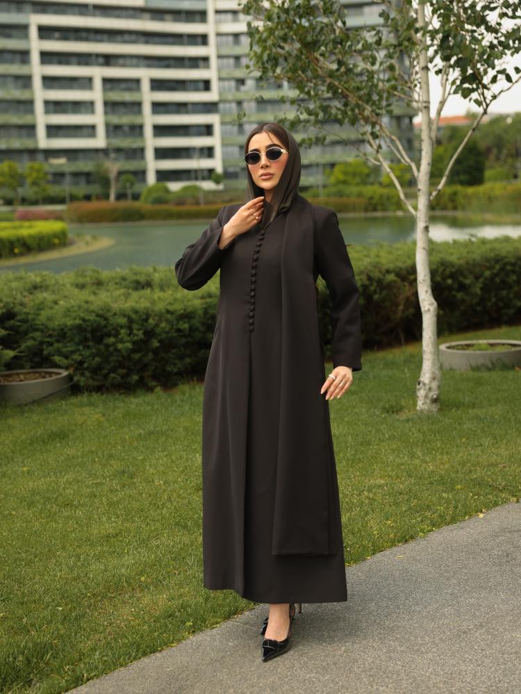 عباية أنيقة مصنوعة من *قماش الكريب* الفاخر .. تتميز بتصميمها الكلاسيكي والعملي الذي يناسب مختلف المناسبات.