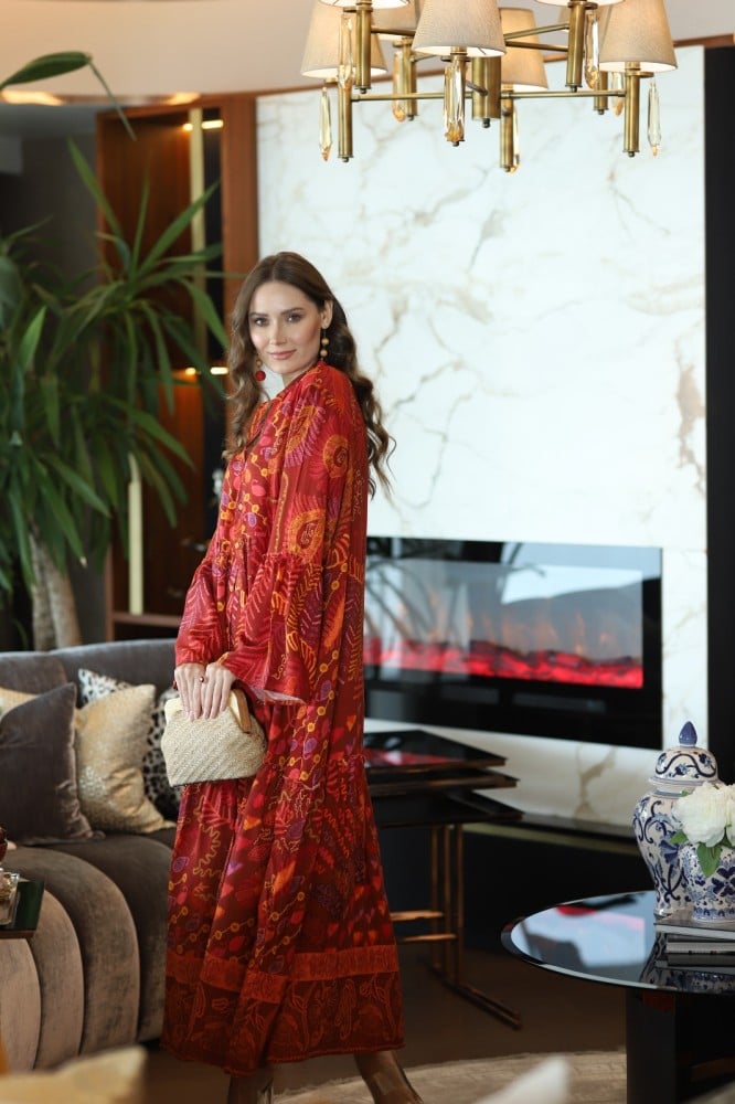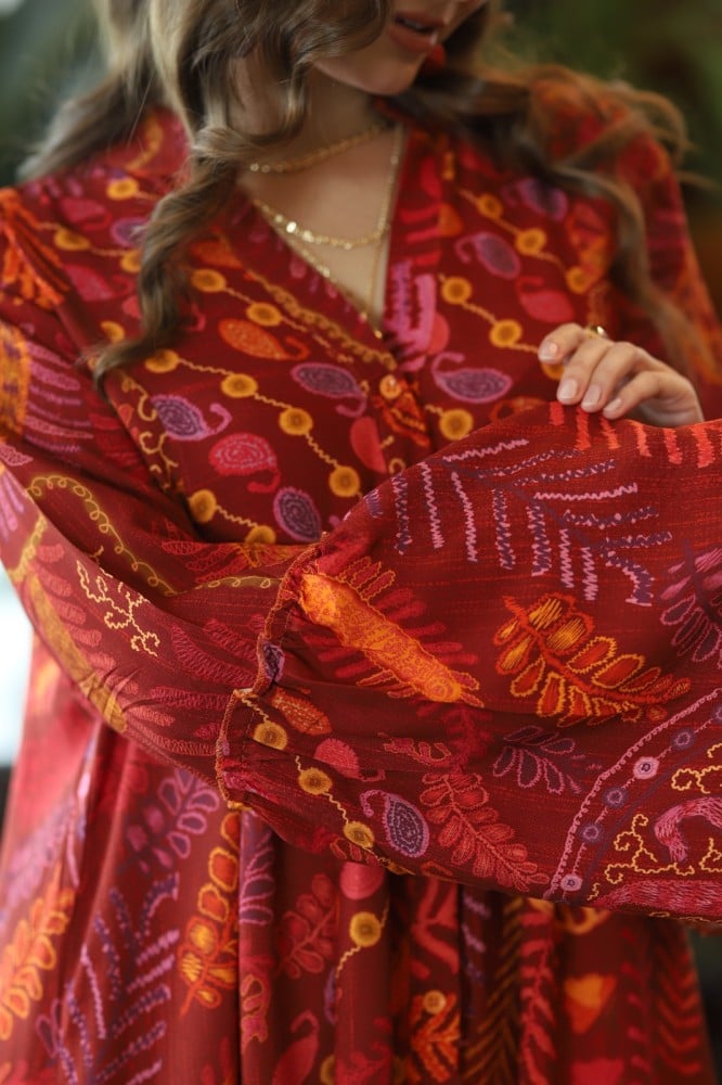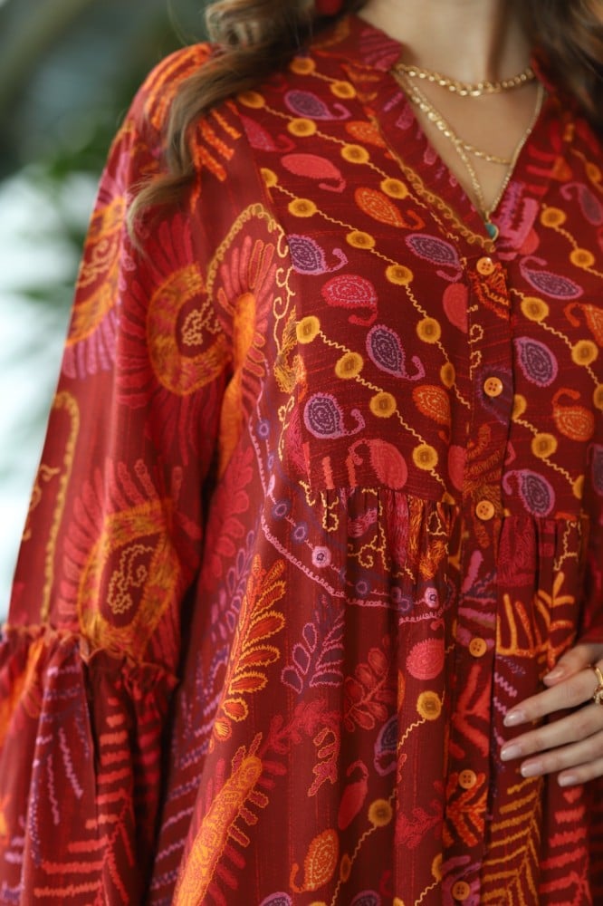 فستان المندالا عنابي