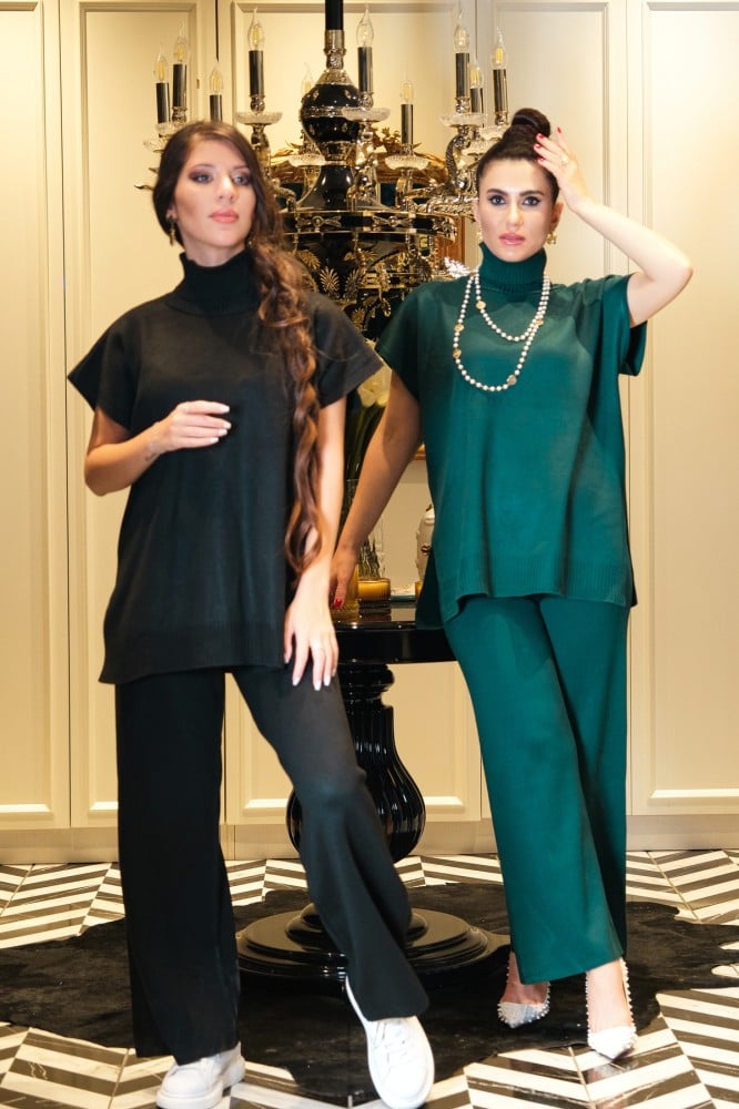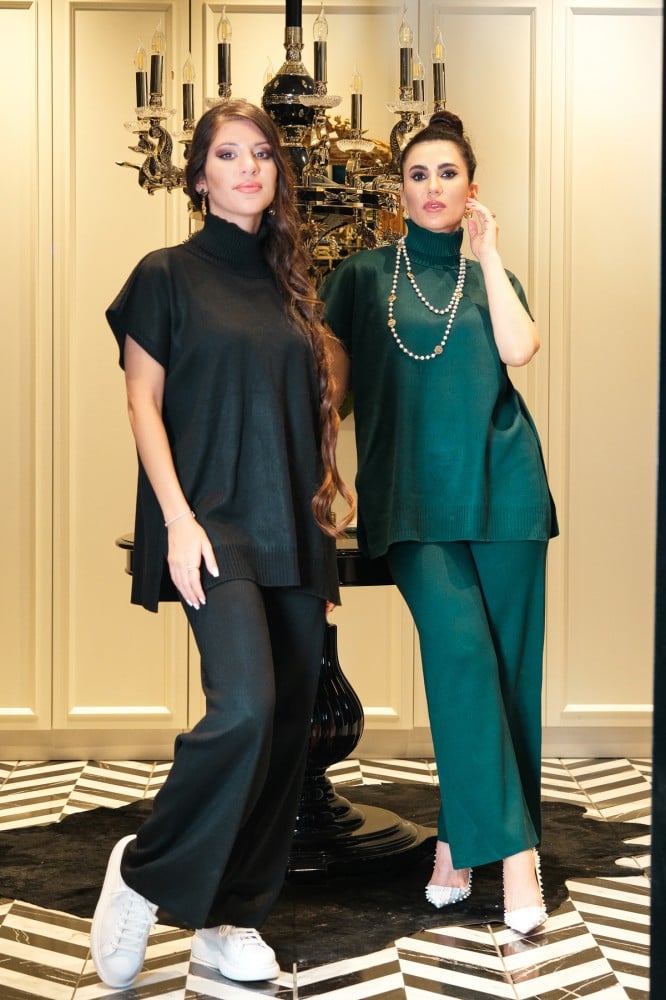طقم الصوف من ريمان يتميز بأكمام قصيرة و ياقة مرتفعة..