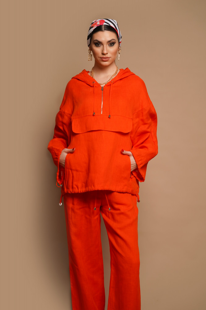 طقم روزا مصنوع من قماش اللينن الخفيف بأكمام كاملة و واسعه و قبعه و بنطلون بمغاط مريح جداً ستكون هذه القطعة عمليه ومريحه للسفر والاستراحات والاماكن الحاره لأن قماشها ماص وقابل للتنفس بشكل ممتاز . اجعلي مظهرك انيق وراقي و مريح غير متكلف ..