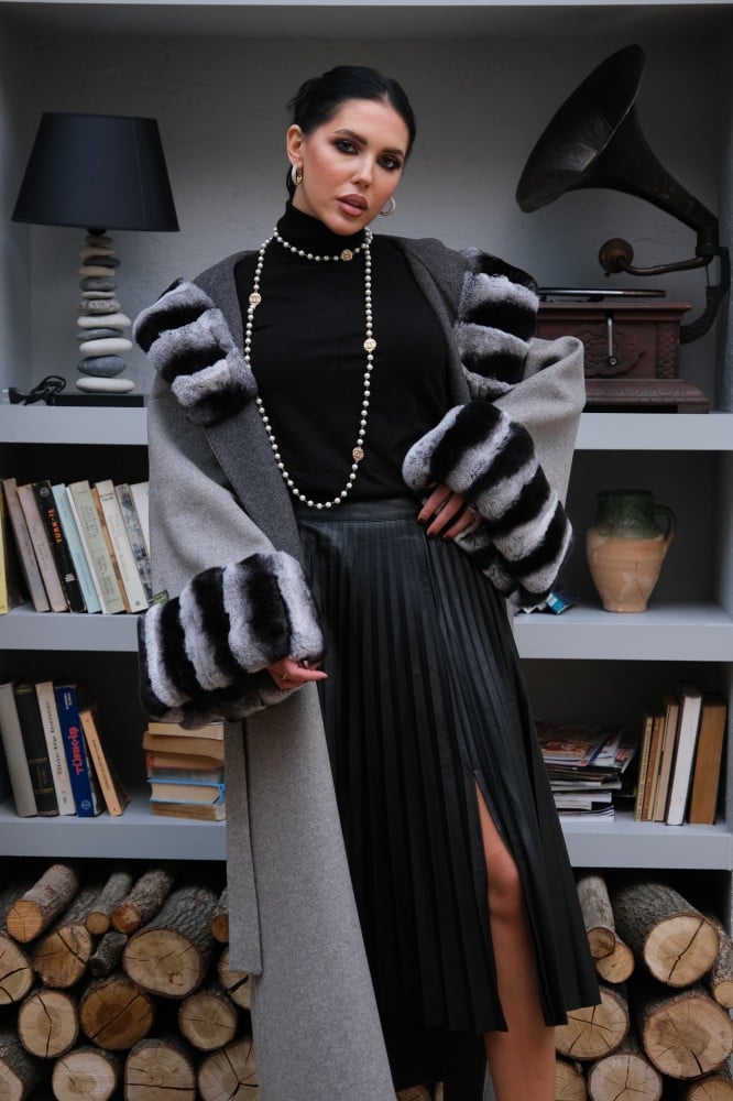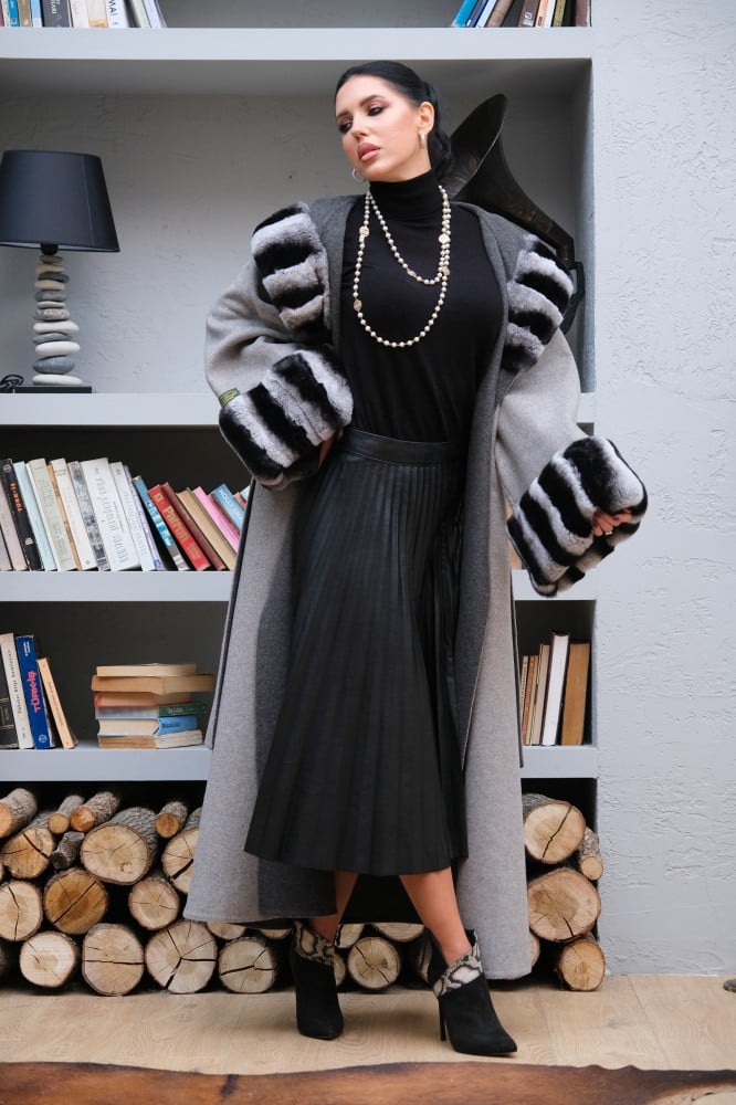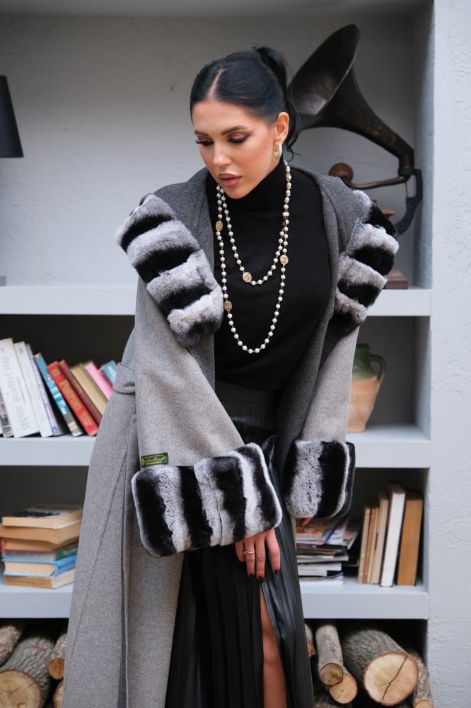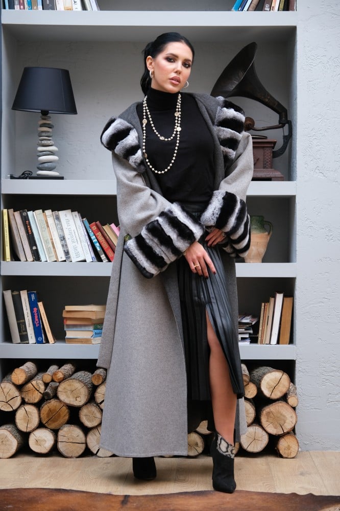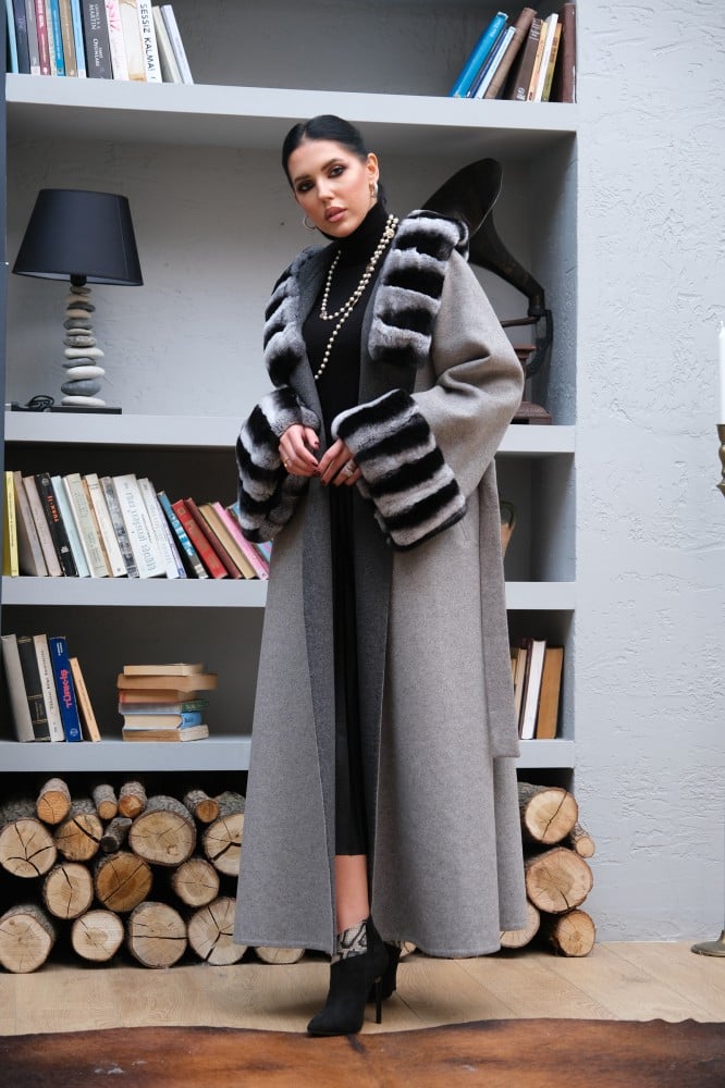-       تتميز بأكمام و ياقة من فرو الريكس الأصلى العريض