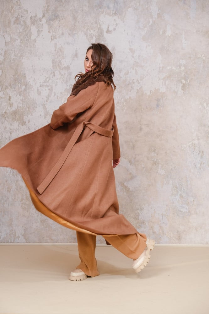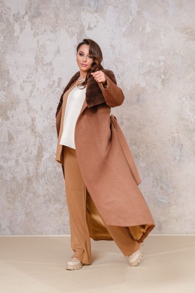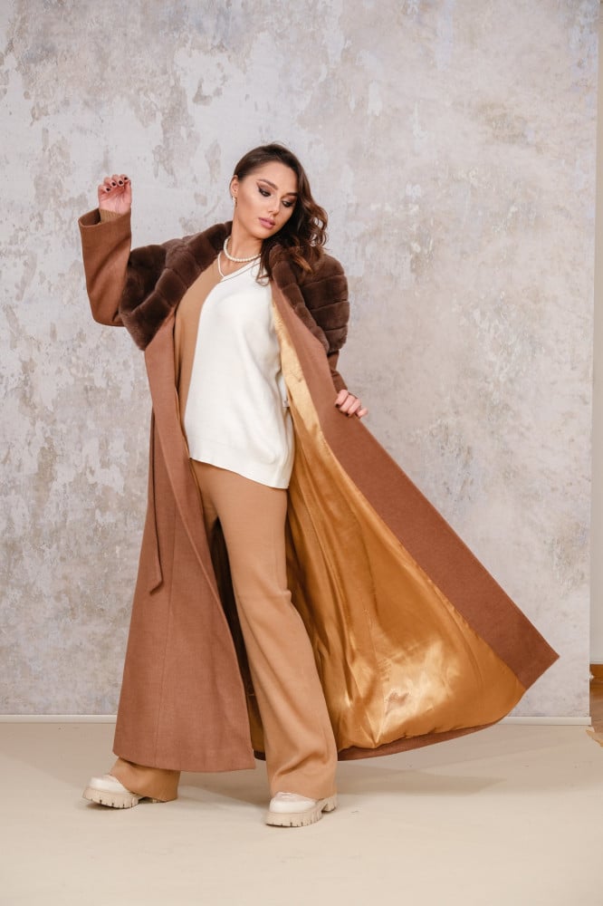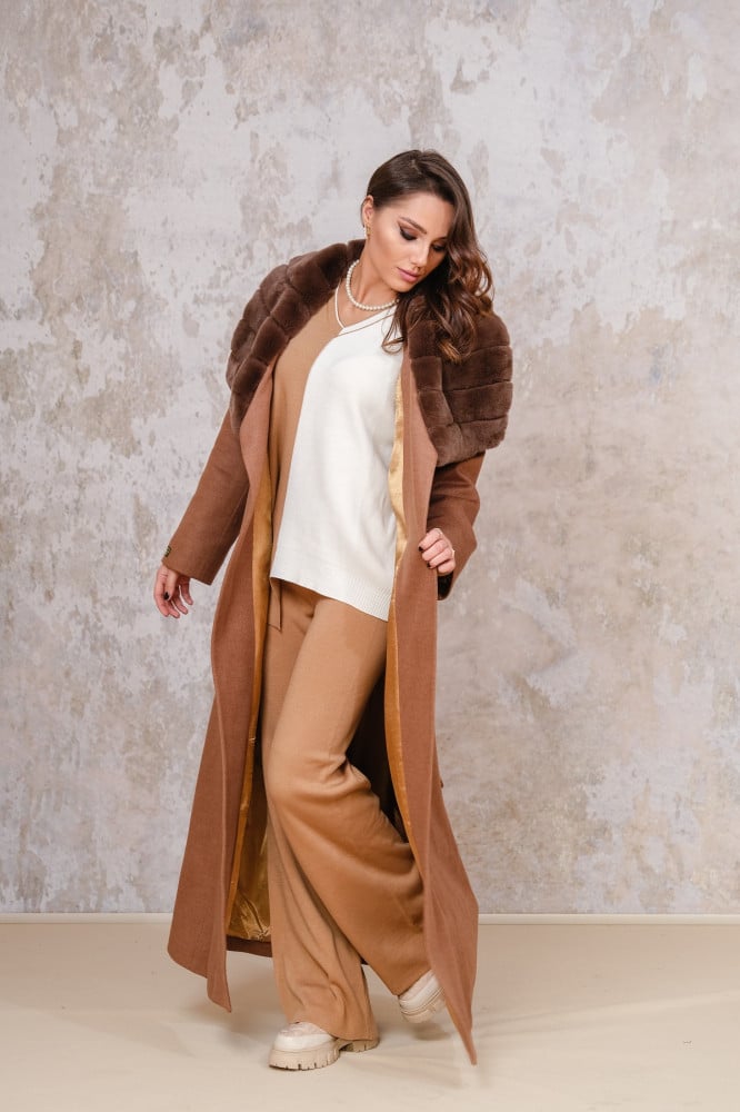 -       بأكمام و ياقة عريضة من فرو الريكس الأصلى
